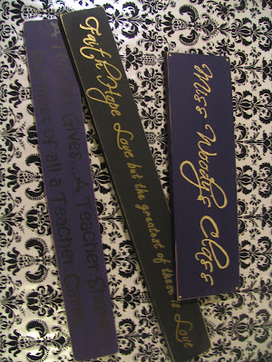 When it came time to ask Makayla what she wanted to get her teacher this year she answered without a doubt, a sign of course! She had already asked Miss Woody and her favorite color is purple. So here are 2 special gifts for Miss Woody and one for her amazing babysitter! Blogger wasn't cooperating and kept turning the picture.